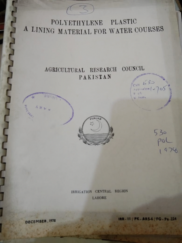 Polythene plastic a Lining material for water courses / Agriculture research council Pakistan