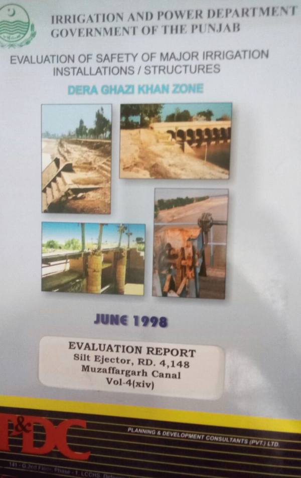 Evaluation of safety of Major Irrigation Installations/Structures Dera Ghazi Khan Zone: Evaluation Report Silt Ejector,RD.4148 Muzaffargarh Canal/ Irrigation and Power Department ,Government of Punjab