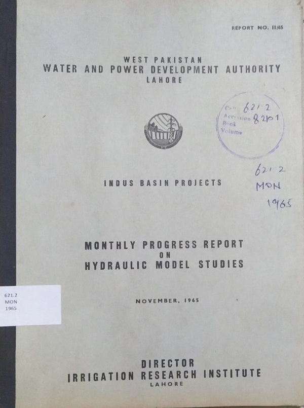 Monthly progress report on hydraulic model studies / Water & Power Development Authority