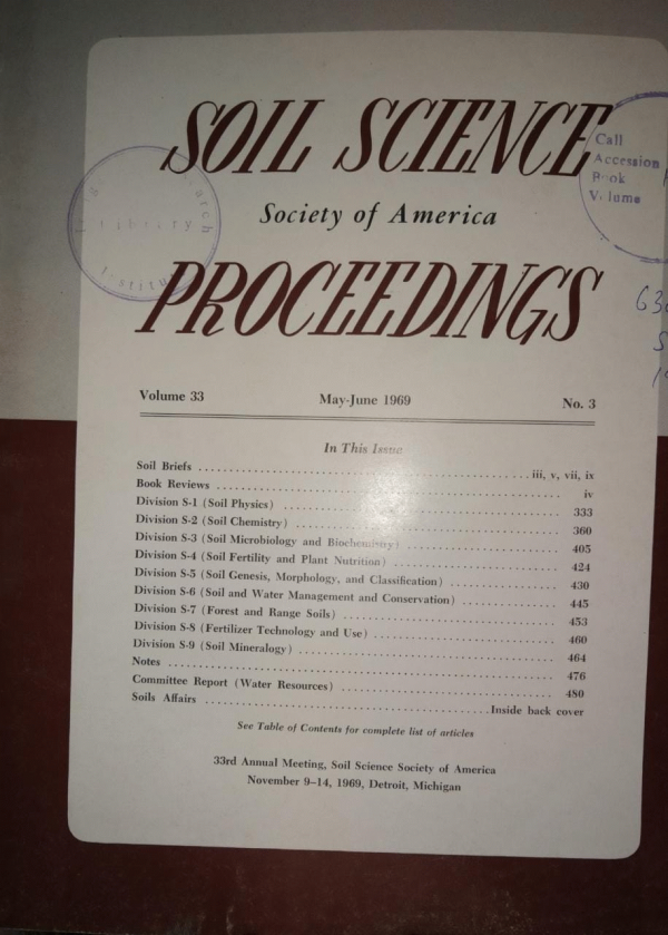 TextSeries: ; Volume .33,No.3.Publication details: Madison, Wis. : Soil Science Society of America, June-1969.Description: Various pages; illustrations (black and white, and colour) 29cmISBN: - 1435-0661