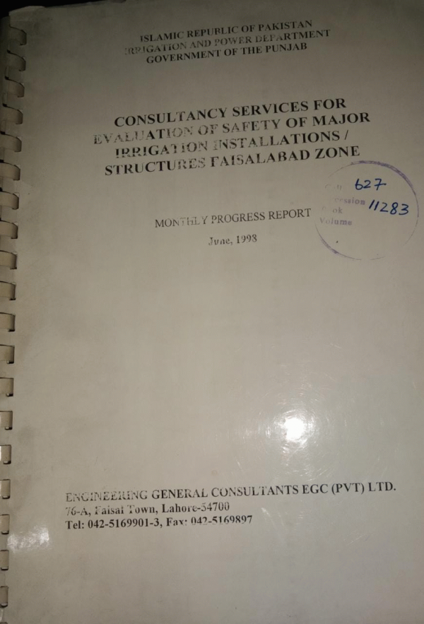 Monthly progress report : Consultancy Services for Evaluation of safety of major Irrigation installations/Structures Faisalabad Zone / Irrigation and Power Departement Lahore,Goverment of Punjab