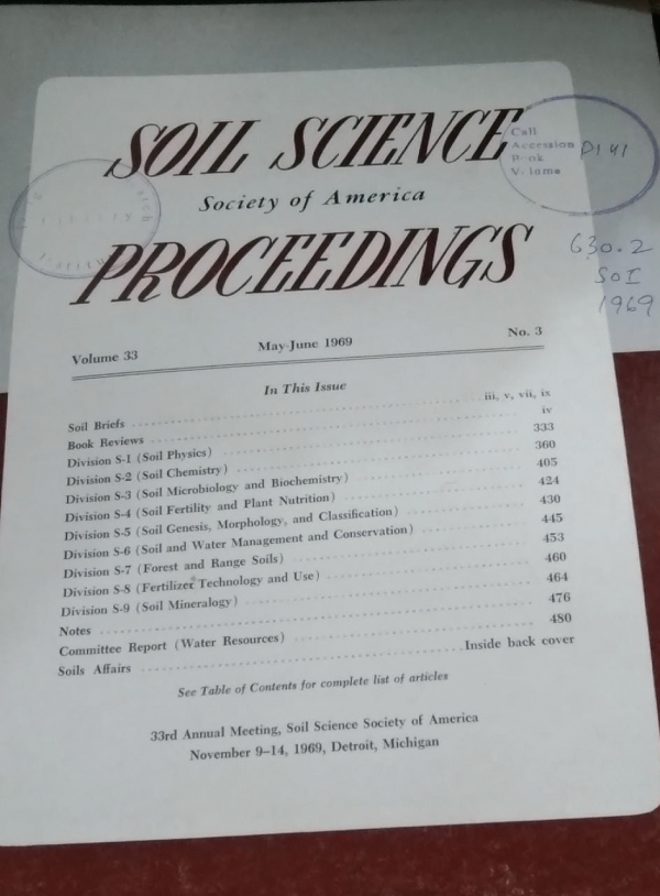 | P 631.497 SOI 1967 Soil science Society of America Proceedings. / | P 631.497 SOI 1970 Soil science Society of America Proceedings. / | P 631.497 SOI 1972 Soil science Society of America Proceedings. / | P 631.497 SOI 1973 Soil science Society of America Proceedings. / | P 631.497 SOI 1974 Soil science Society of America Proceedings. / | P 631.497 SOI 1975 Soil science Society of America Proceedings. / | PID-IRI-BCR0000021 Brick & clay record: Use of quarry tile as a decorative materila. / |