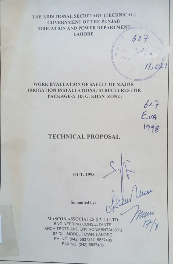 Work evaluation of safety of major irrigationinstallations/Structures for package-A (D.G Khan zone): Technical proposal. / Irrigation research institute.