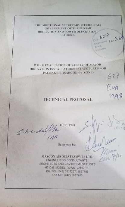 Technical proposal for evaluation of safety of major irrigation installation/structures./ Irrigation and power department.