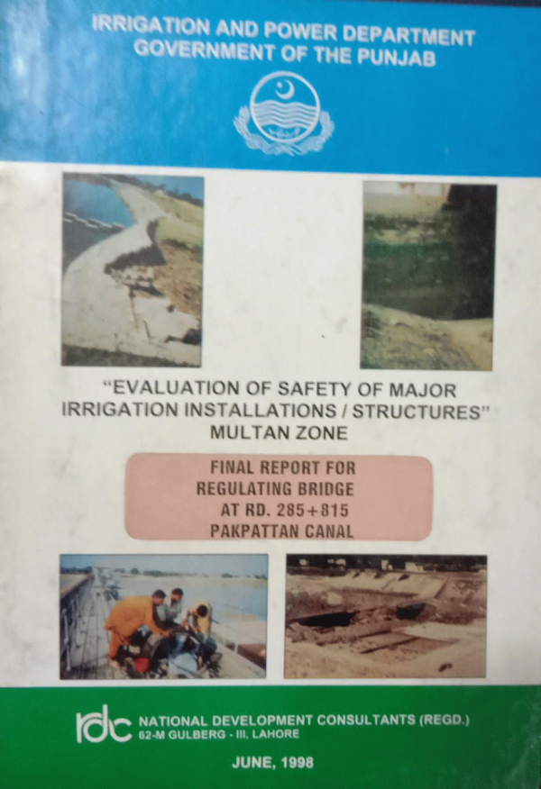 Evaluation of safty of major irrigation installations/ structures in Multan zone. : Final report for regulating Village road bridge at RD. 285+815 Pakpattan canal. / Irrigation Research Institute.