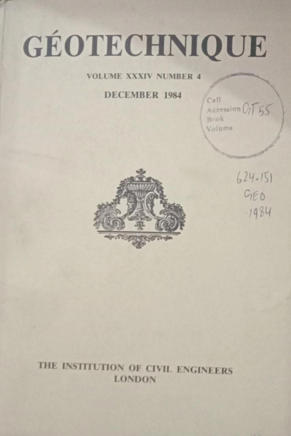 TextPublication details: London : The institute of civil engineers, 1985Edition: Number 2; Volume 35Description: various pages illustrations, tables and graphsSubject(s): DDC classification: - 624.151 GEO 1985 V-35#2