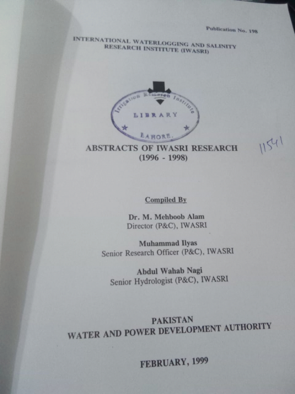 Abstracts of IWASRI research (1996-1998). / M. Mehboob Alam.