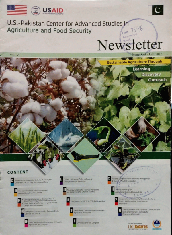 U.S-pakistan center for advanced studies in agriculture and food security newsletter/ Ucdavis university of california