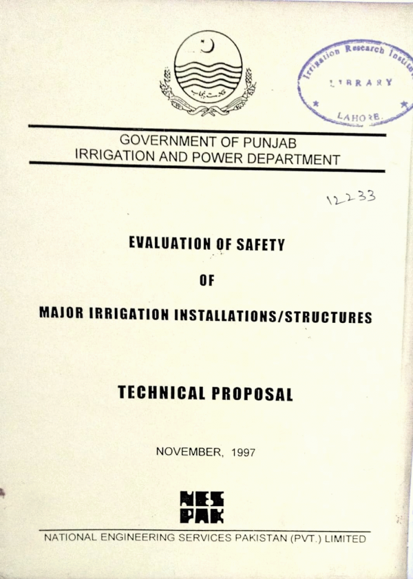 Evaluation of safety of major irrigation installations/structures: Technical proposal/ National engineering services pakistan (pvt) limited