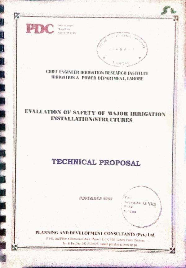 Evaluation of safety of major irrigation installations structures: Technical proposal. / Chief Engineer Irrigation Research Institute Irrigation & Power Department