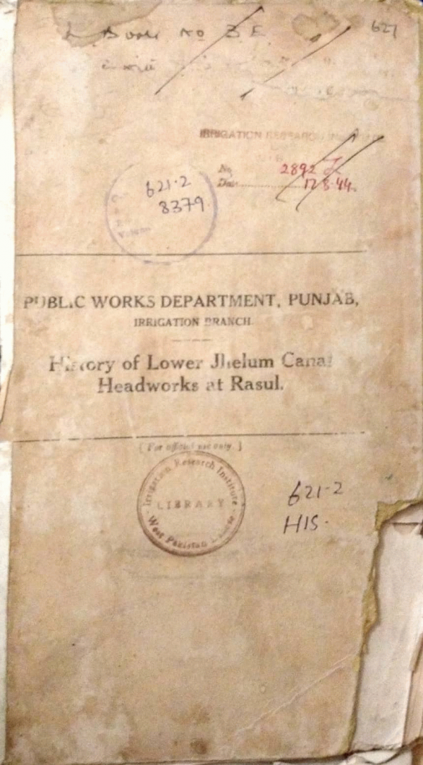 History of lower jhelum canal Headworks at Rasul/ Public Works Department,Punjab,Irrigation Branch