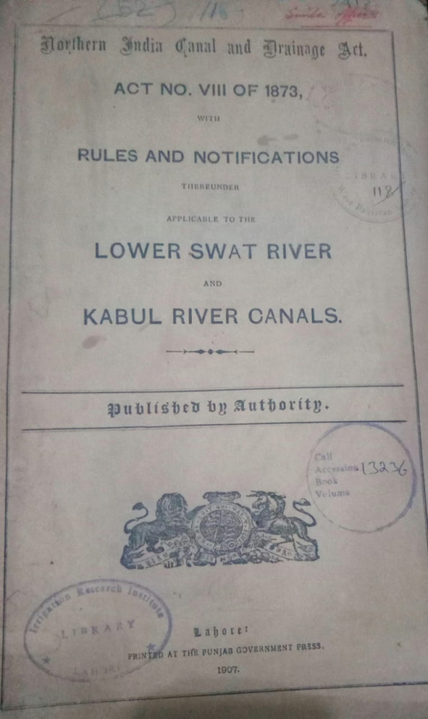 Rules and notifications lower swat river and kabul river canals. / Punjab Government Press.