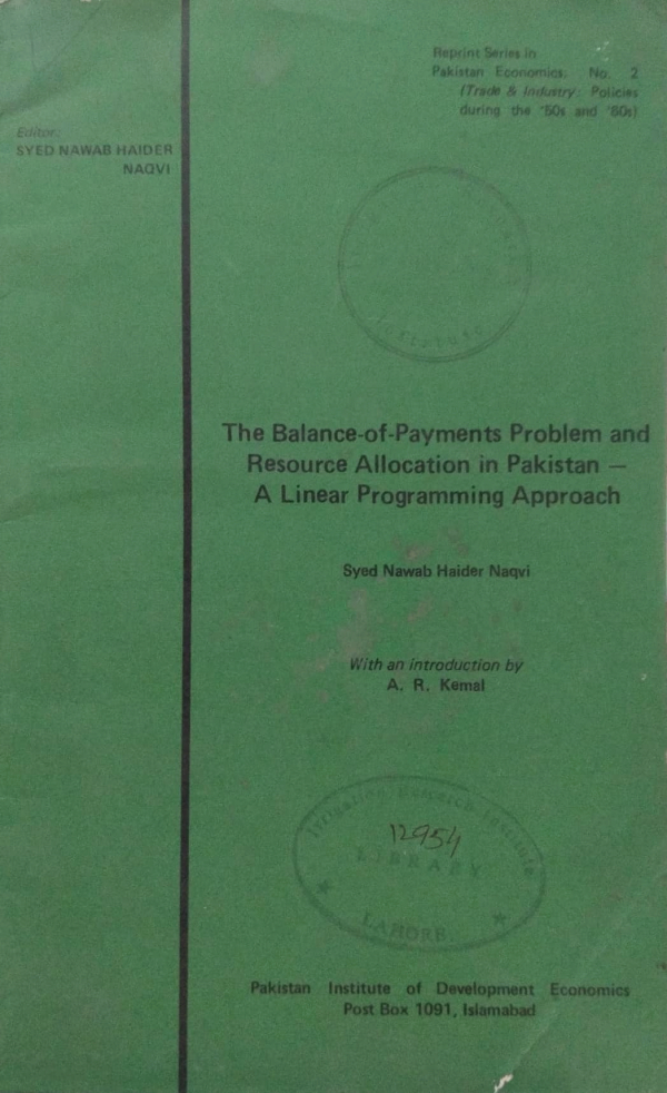 The blance of payments problem and resource allocation in pakistan a linear programming approach./ Syed Nawab Haider Naqvi