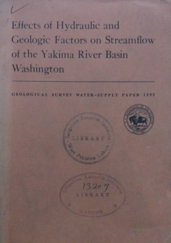 Effects of hydraulic and geologic factors on streamflow of the Yakima River Basin, Washington./ Hallard B.Kinnison,