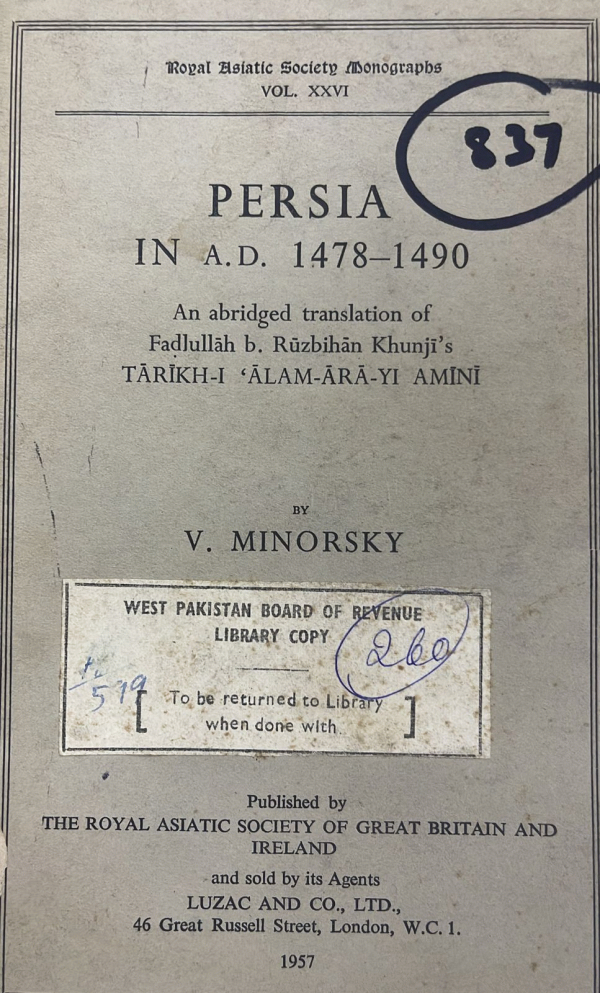 Persia in A.D. 1478-1490 : An abridged Translation of Fadlullah b. Ruzbihan Khunji's Tarikh-i-Alam-Ara-Yi Amini / V. Minorsky.
