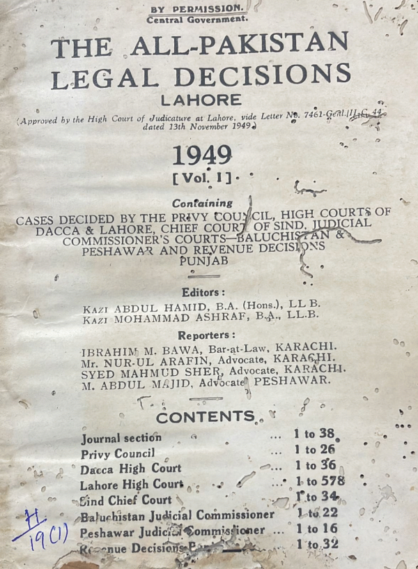 The all Pakistan legal decisions (PLD) : 1949 / Edited by Kazi Abdul Hamid, Kazi Muhammad Ashraf.