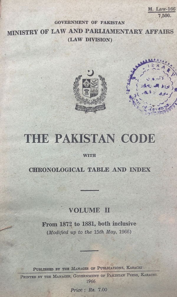 The pakistan code with chronological table and index : From 1872 to 1881 both inclusive / Ministry of law and parliamentary affairs (law division)