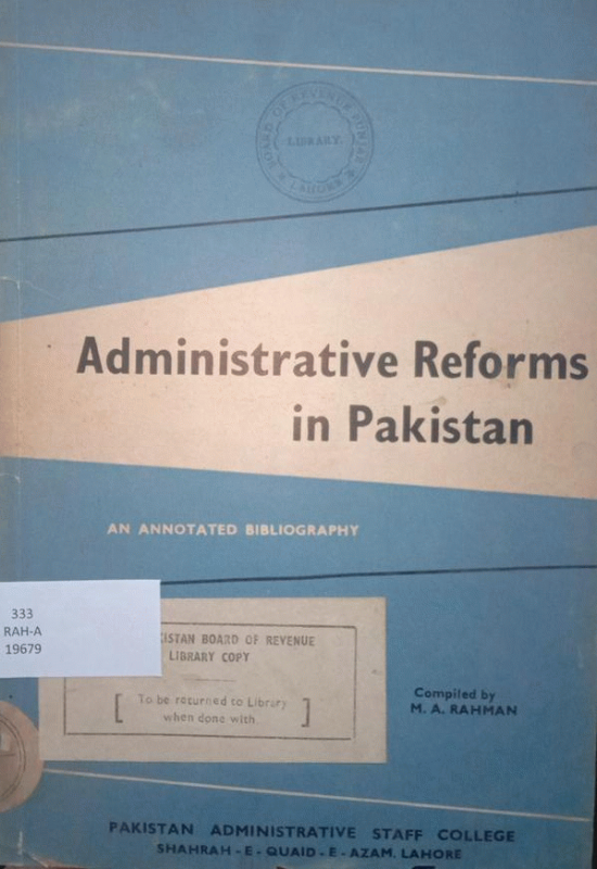 Administration reforms in west Pakistan / M.A. Rahman