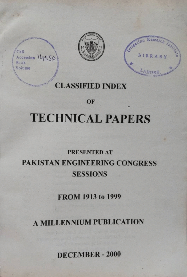 Classified index of technical papers: presented at Pakistan engineering congress sessions from 1913 to 1999 / Pakistan Engineering Congress