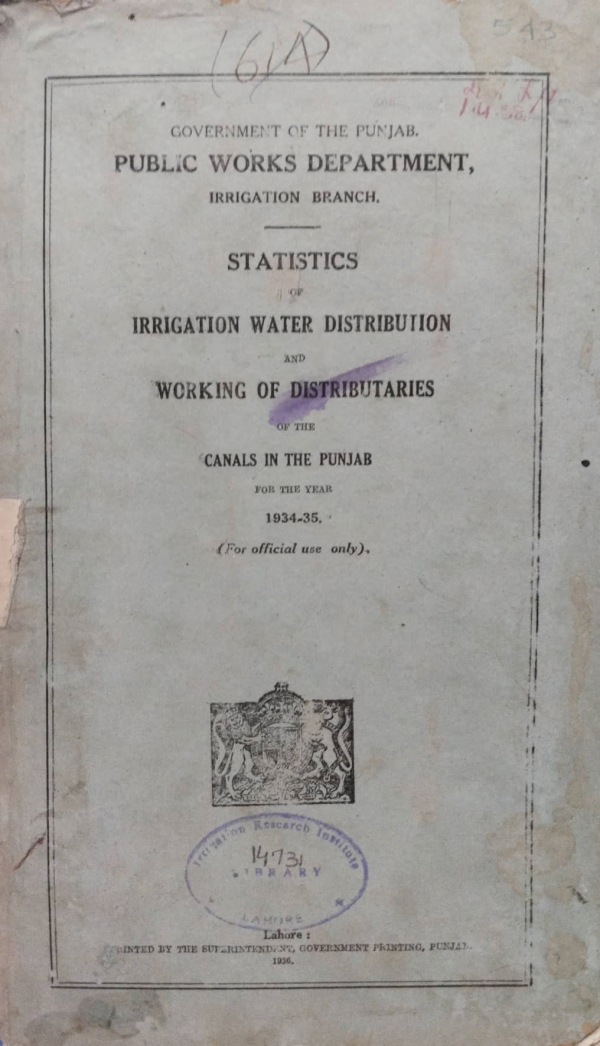 Statistics of irrigation, water distribution and working of distributaries of canals in the Punjab for the year 1934-35 / Government of the Punjab Public Works Department Irrigation Branch