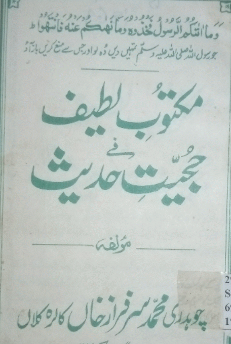 مکتوب لطیف نے حجیتِ حدیث / چوہدری محمد سرفرازں