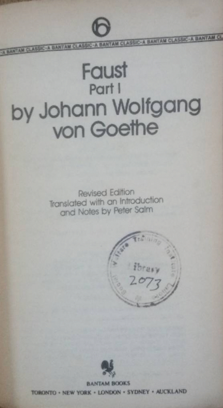 Faust part I/ Johann Wolfgang Von Goethe.