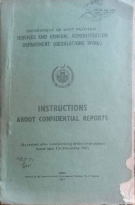 Instructions about confidential reports/ Government of Pakistan, Services and general administration department.