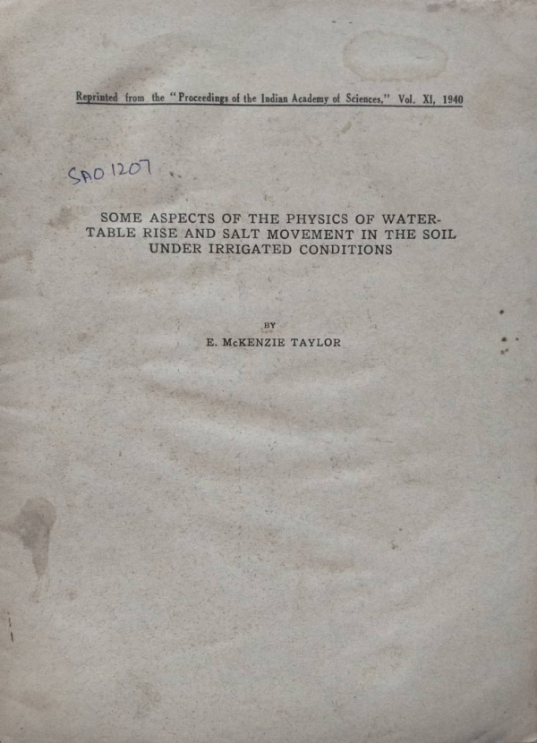 Some aspects of the physics of water table rise and salt movement in the soil under irrigated conditions / E.Mckenzie Taylor by Series: ; Vol.XI
