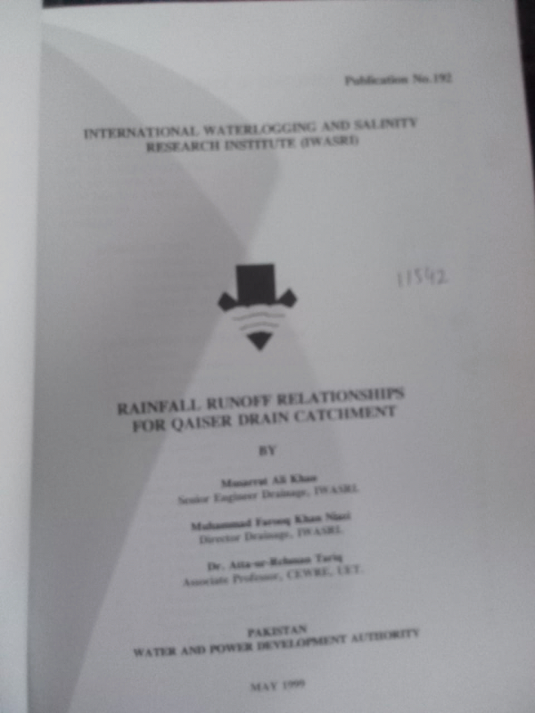 Publication details: Lahore: International Waterlogging and Salinity Research Institute; 1994