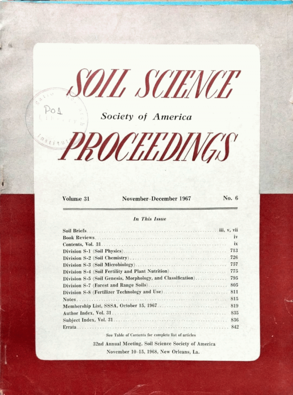 Edition: SSSA8 37(4) : 489-662 (1973)Volume 37