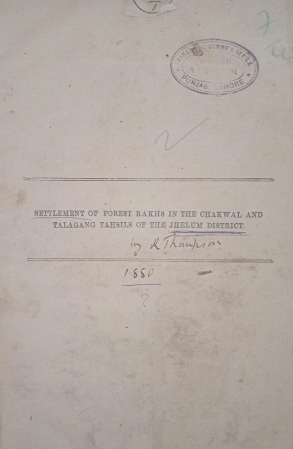 Settlement of forest Rakhs in the Chakwal and Talagang Tahsil of the Jhelum District / by