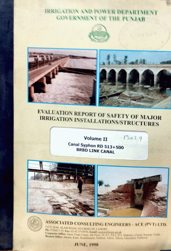 Evaluation of safety of major irrigation installations/structures: canal syphon RD 513+500 BRBD link canal. / Irrigation and Power Department ,Government of Punjab by Series: ; Volume II