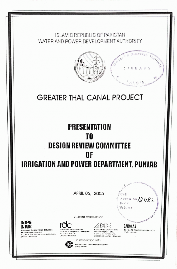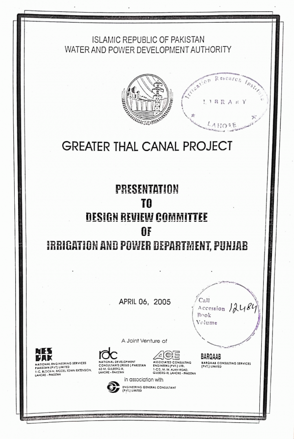 Greater thal canal project: Presentation to design review committe of irrigation and power department,punjab/