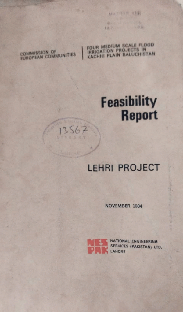 Four medium scale flood irrigation projects in kachi plain Baluchistan: Lehri project. /