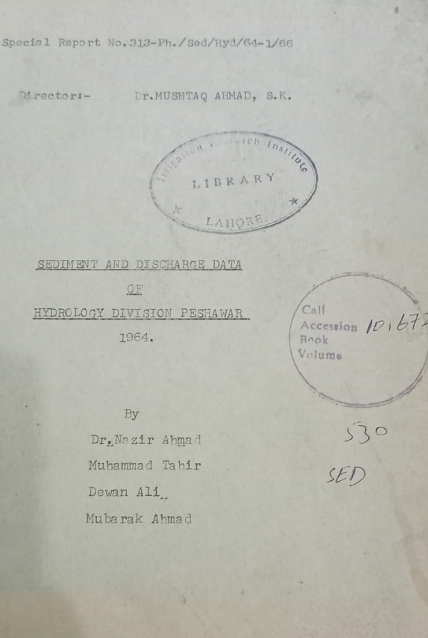 Sediment and Discharge Data of hydraulic Division Peshawar / Dr.Nazir Ahmad by