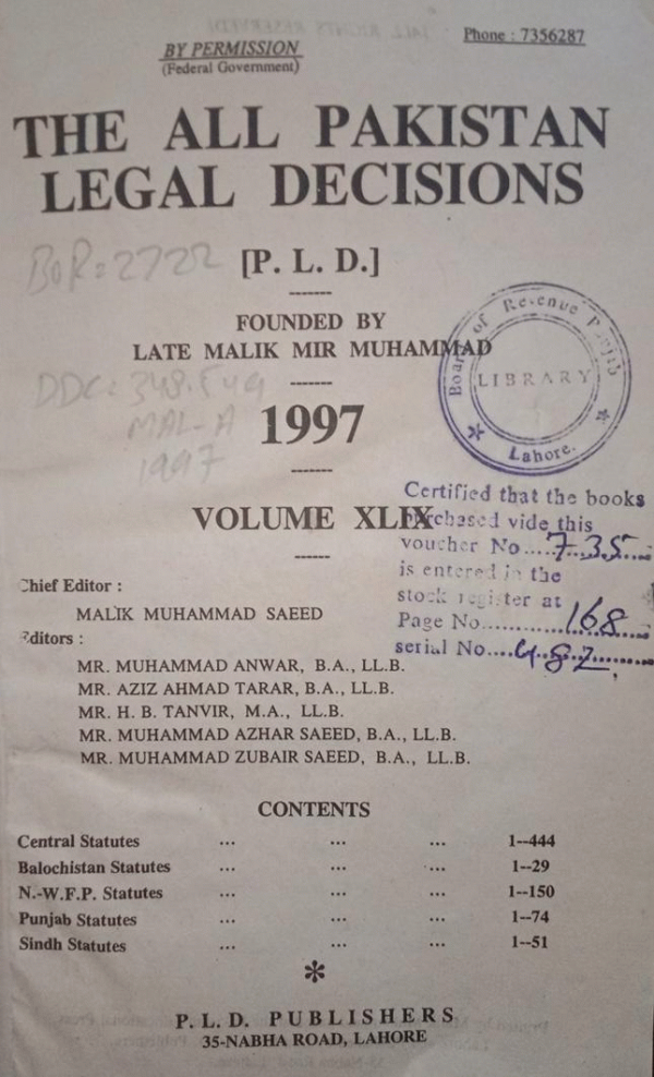 The all pakistan legal decisions (PLD) 4 : 1997 /