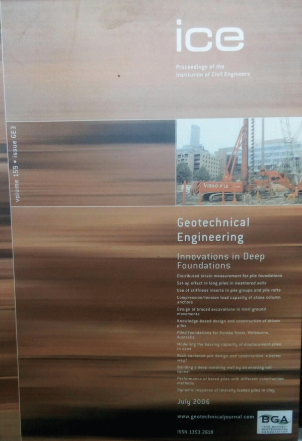 ICE: proceeding of the Institution of civil engineers./ Institution of civil engineers. by Series: Geotechnical Engineering, Innovations in deep foundations ; Volume 159, Issue GE3