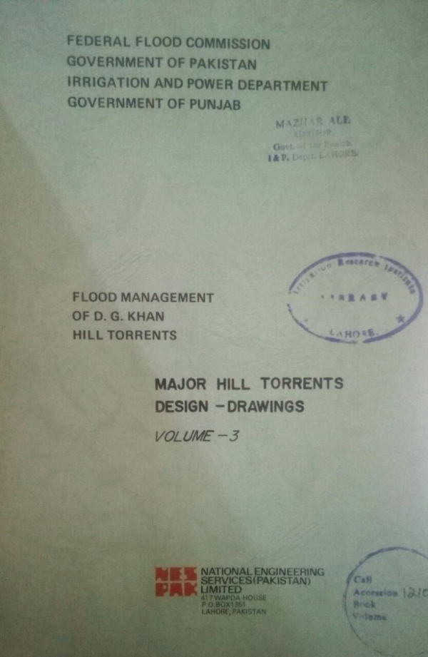 Flood management of D.G Khan Hill Torrents : major hill torrents design-drawings. / Federal flood commission government of Pakistan irrigation and power department by
