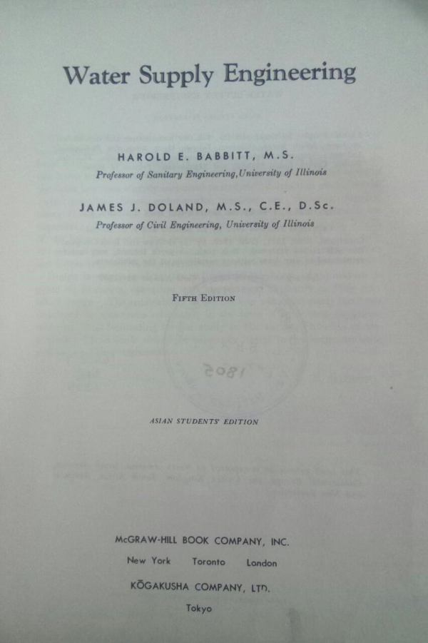 Water supply engineering / Harolde E.Babbitt by