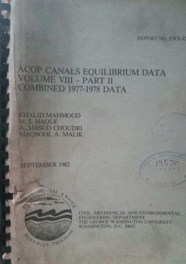 Acop canals equilibrium data combined 1977-1978 data. / Khalid Mahmood. by Series: ; Volume VIII-PART I