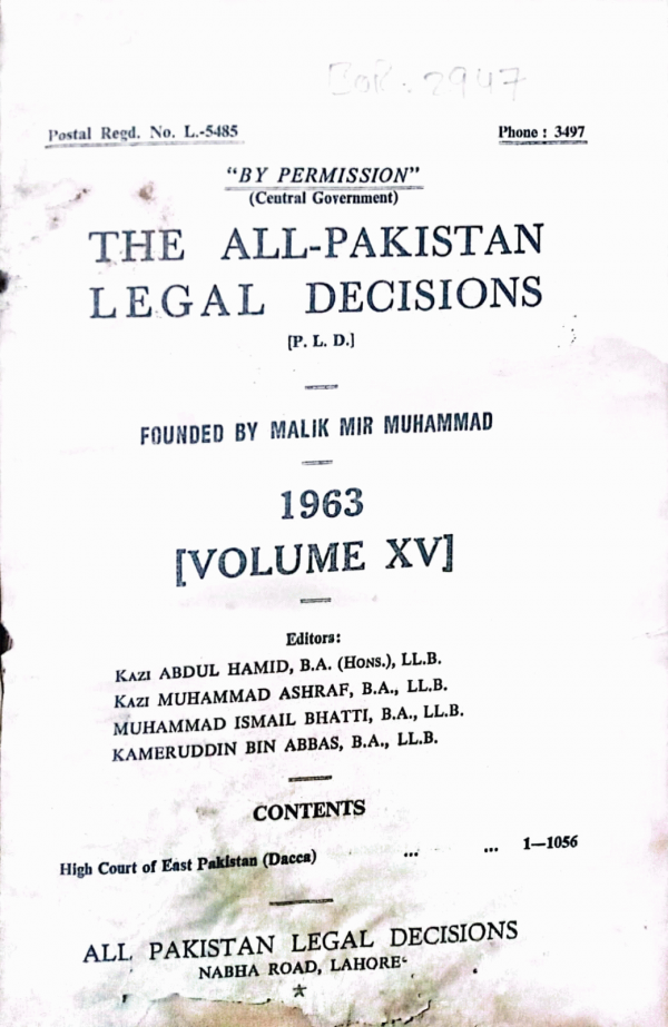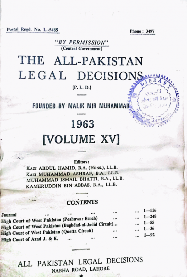 The all Pakistan legal decisions (PLD) : 1963 / Malik Meer Muhammad and edited by Malik Muhammad Saeed & Muhammad Ismail Bhatti by Series: ; vol.xv