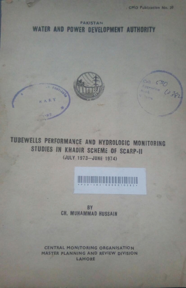 Tubwells performance and hydro logic Monitoring studies In Khadir scheme of scrap-II : (July 1973- June 1974) /
