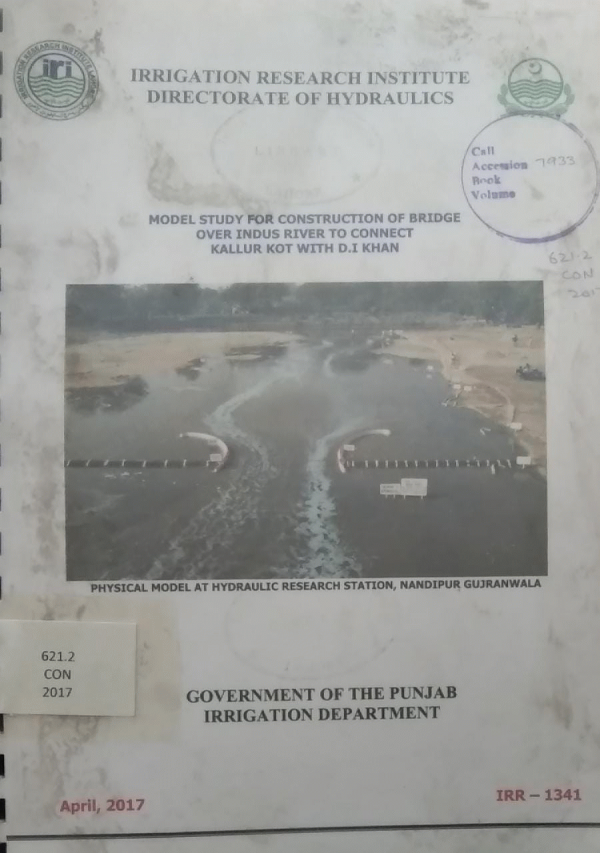 Model study for construction of bridge over indus river to connect kallur kot with D.I Khan: hydraulic model study/