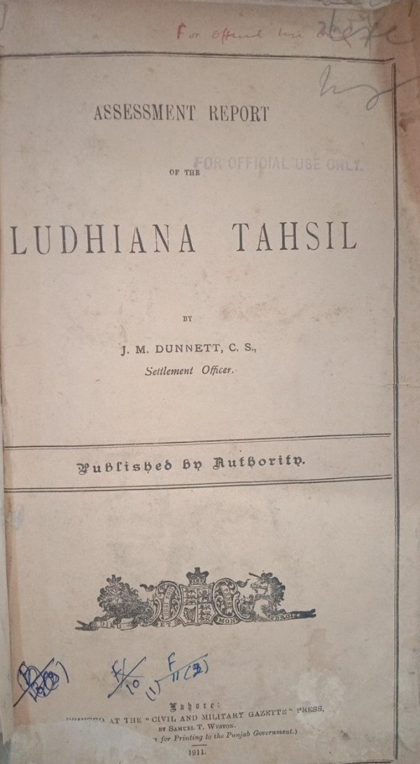 Assessment report of the Ludhiana Tahsil / J.M. Dunnett. by