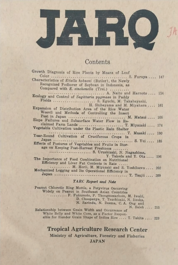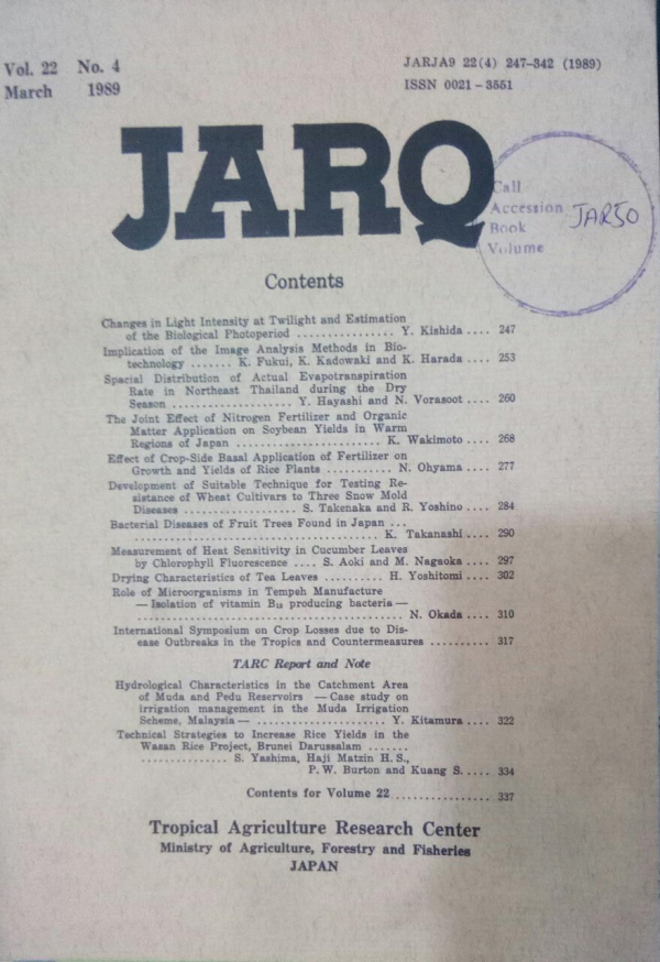 Publication details: Japan: Tropical Agriculture Research Center 1992