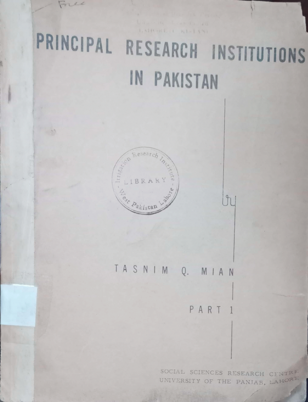 Principal research institutions in Pakistan / Tansim Q.Mian by