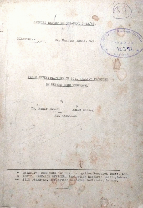 Publication details: Lahore: Irrigation Research Institute; 1974