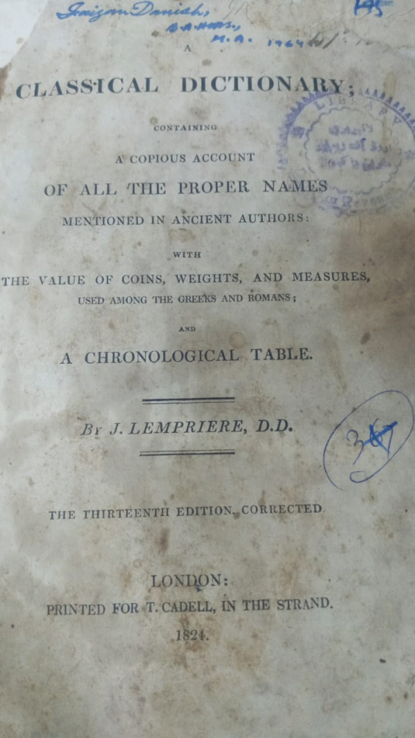 Classical dictionary containing a copious account of all the proper names / J. Lempriere. by