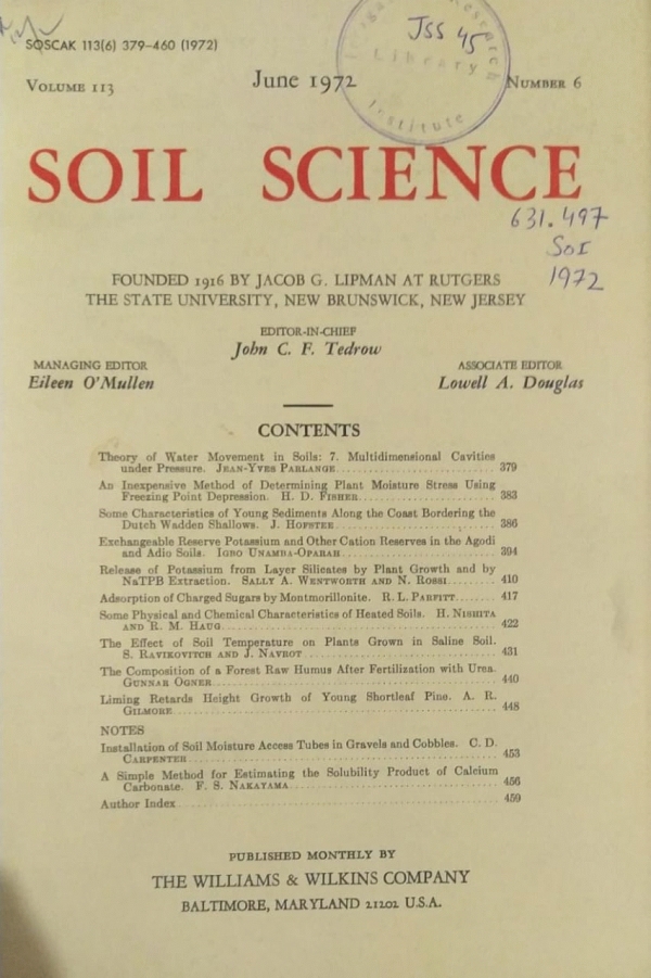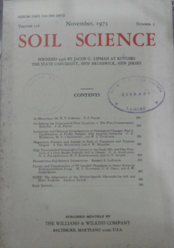 Availability: Items available for loan: Irrigation Research Institute Library - Punjab Irrigation Department (1)Call number: 630.2 SOI 1973 Vol-116#6.