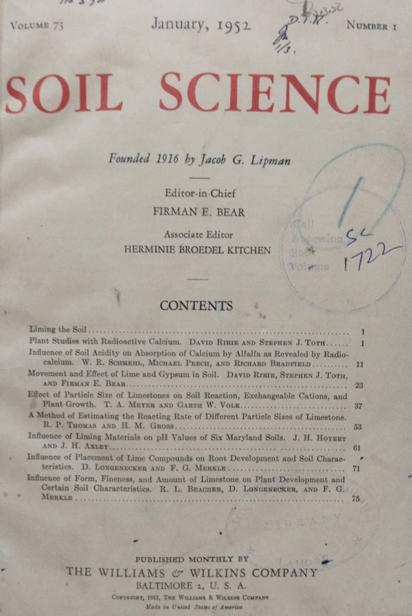 Soil science / Edited by Firman E.Bear by Series: No.1 ; Volume-73